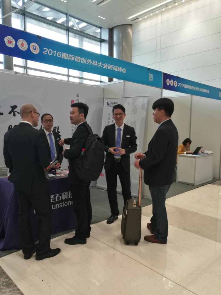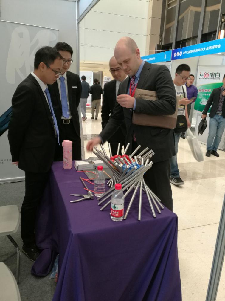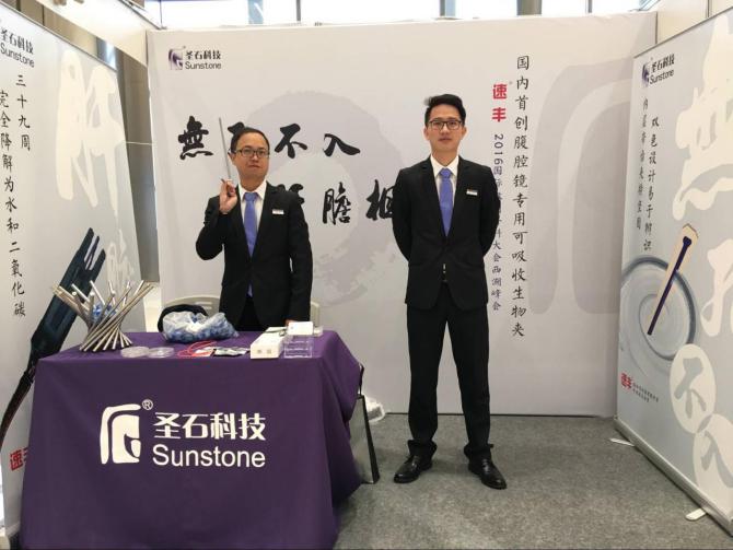 會(huì)議茶歇期間,我公司展位吸引了眾多專家醫(yī)師們的關(guān)注,其中有來(lái)自英國(guó)皇家英格蘭外科學(xué)院的專家代表前來(lái)了解我公司產(chǎn)品---速豐?可吸收止血結(jié)扎夾,現(xiàn)場(chǎng)我司工作人員欣然以嫻熟的英語(yǔ)為其做介紹與產(chǎn)品演示,我公司產(chǎn)品的特點(diǎn)及優(yōu)勢(shì)得到了英國(guó)皇家英格蘭外科學(xué)院專家的認(rèn)可與肯定!