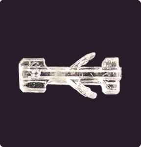 內(nèi)層夾材料采用醫(yī)用聚合物"聚對二氧環(huán)己酮"(PDO),與進(jìn)口單層V型可吸收夾材質(zhì)一致,